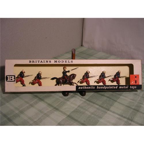 TOY SOLDIERS, Picture Window Boxes from the 1950s. Set #9166 France ZOUAVES Charging in original box, slight wear on box edges. 5 men charging, 1 mounted. All in excellent shape.