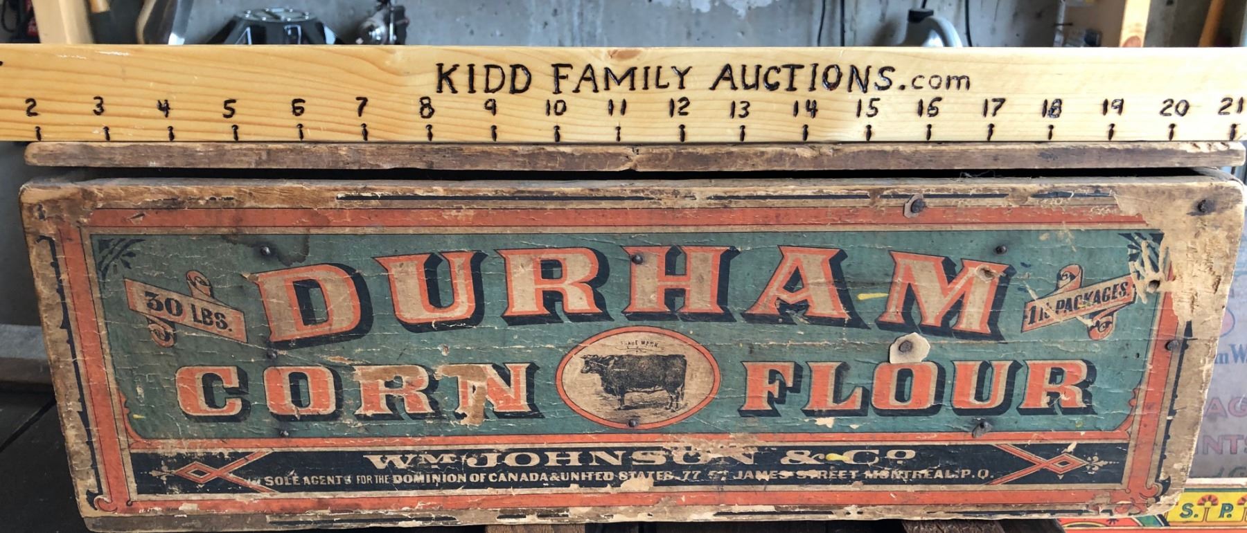 WM JOHNSON & CO. DURHAM CORN FLOUR COVERED CRATE WITH ORIGINAL DECAL - MONTREAL