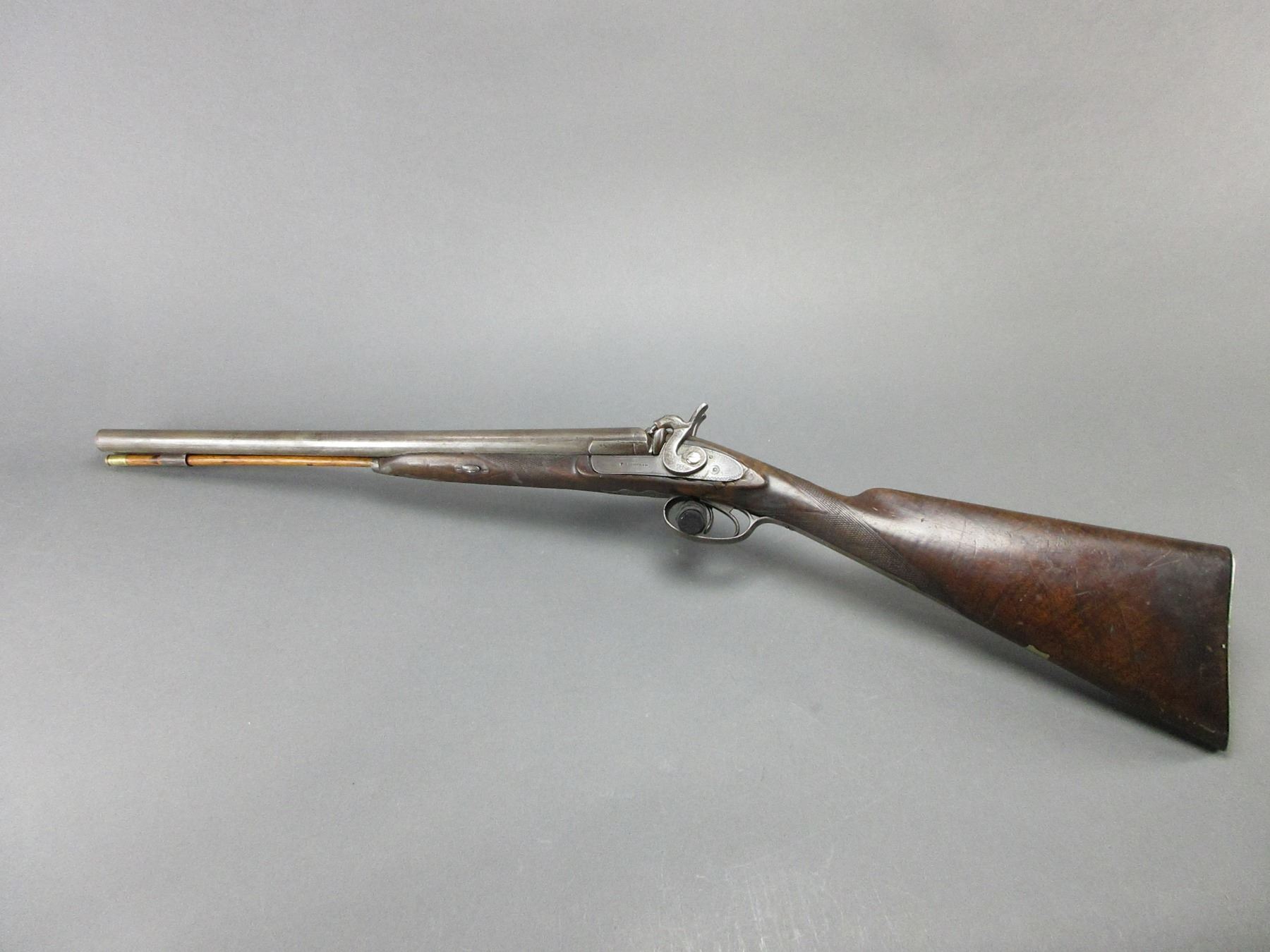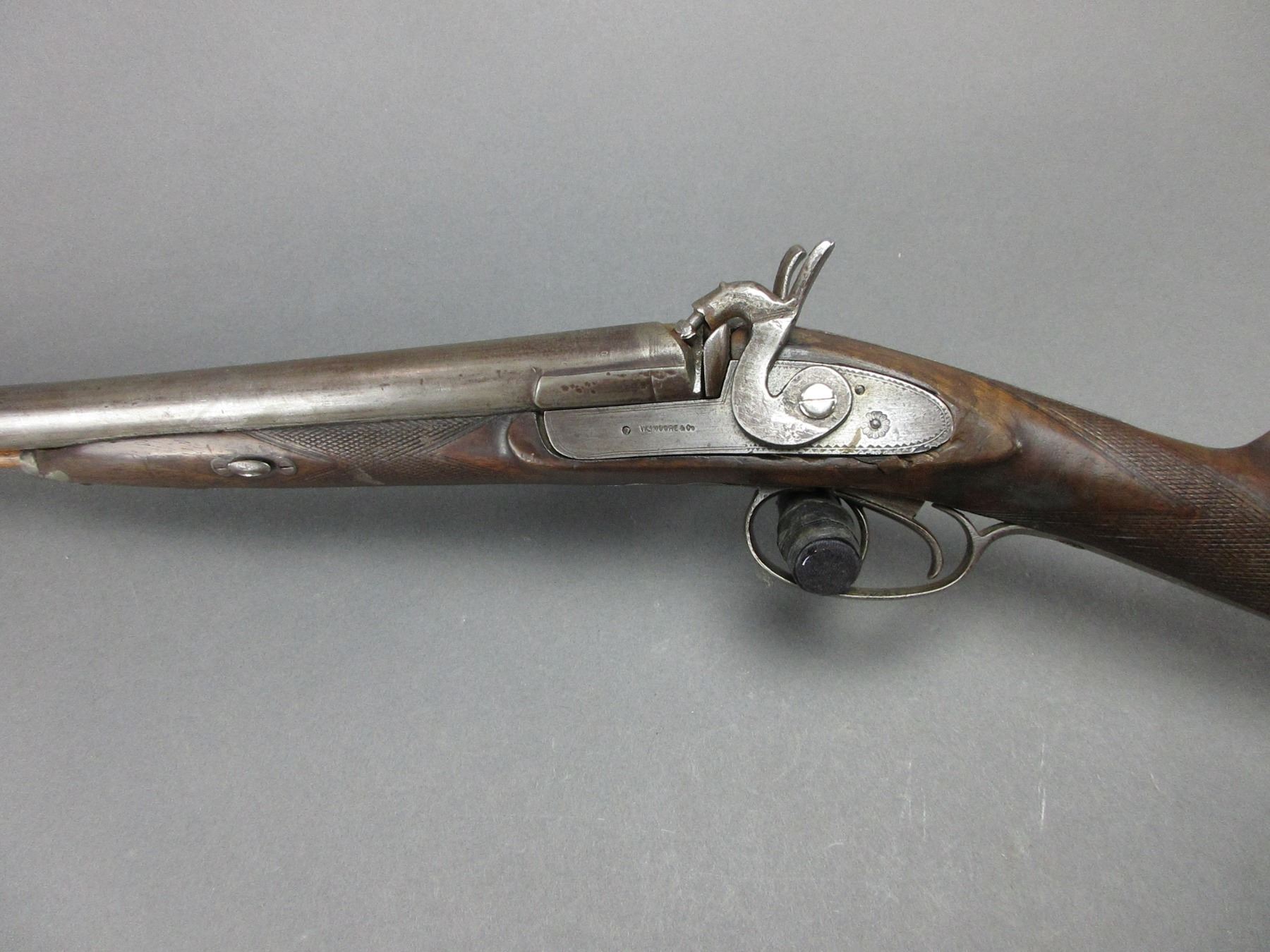WM Moore Side X Side Percussion Coach Gun- 12-14ga- 20" Barrels- C 1870- Checkered- Engraved- Good Condition- #NA