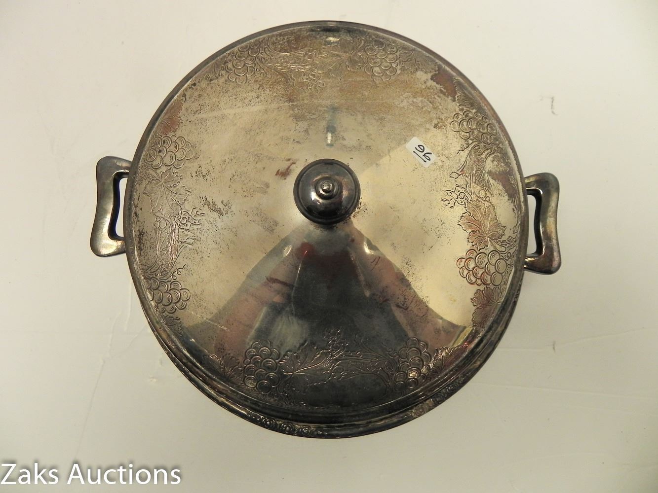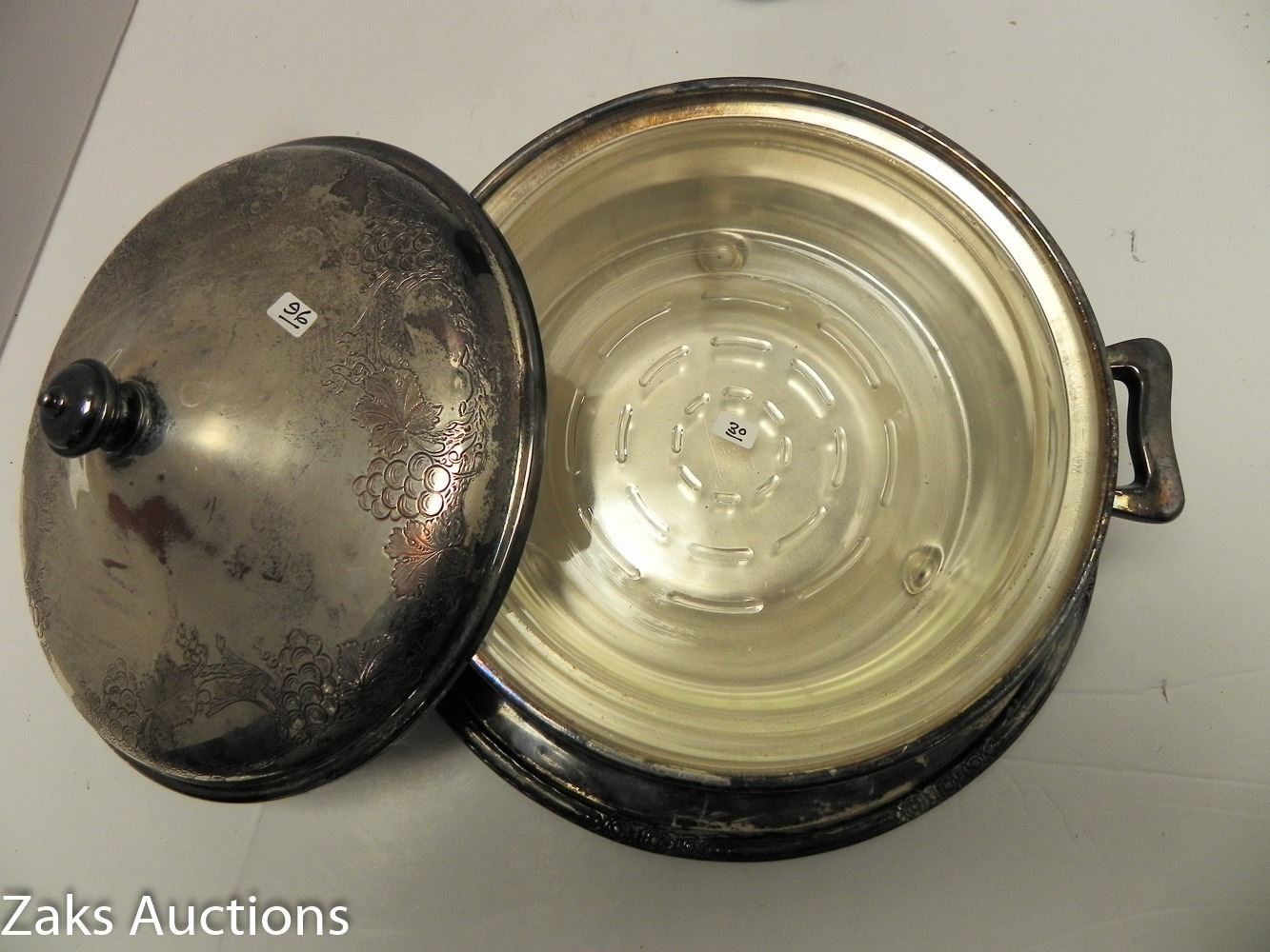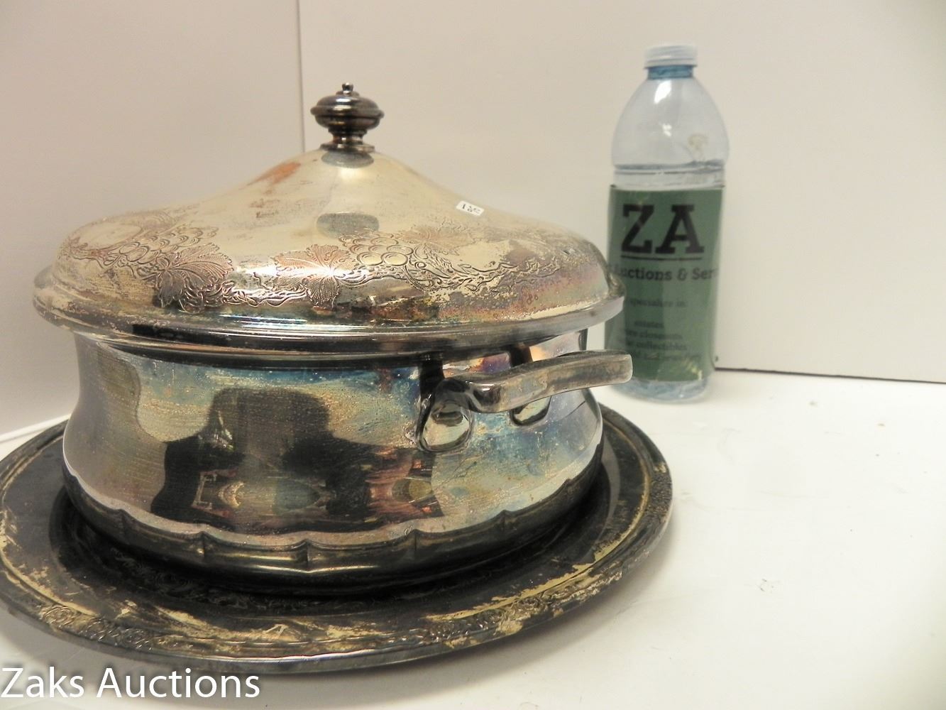 WM ROGERS VINTAGE SILVER PLATED COPPER SERVING BOWL C/W LID, INSERT AND PLATE