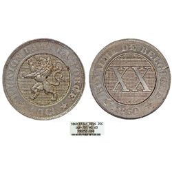 Belgium. Leopold I (1831-1865). ESSAI 20 Cents 1860. NGC MS63, Scarce!