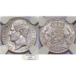 Mint: Brussels. Obv: A lion guarding constitution. Rev: Crowned Initials, date below. Ref: KM. 5.1, type with wide 1 Grade: NGC graded and certifi