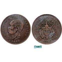 Cambodia. Norodom I (1860-1904). Cu 10 Centimes 1860. ICG VF20.