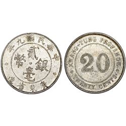 CHINA – PROVINCIAL ISSUES. KWANG-TUNG PROVINCE. SILVER 20 CENTS 1920. XF+