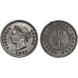 CYPRUS. BRITISH RULE. AE 1/4 PIASTRES 1884. VF