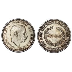 DENMARK. CHRISTIAN X. AR 2 KRONER 1945. AU, TONED