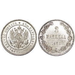 FINLAND. NICHOLAS II. AR 2 MARKKAA 1908. XF+, SCARCE
