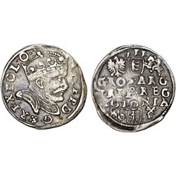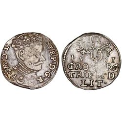 POLAND. CROWN ISSUE. STEPHEN BATHORI (1576-1586). SILVER 3 GROSS 1586. AVF, RARE