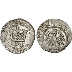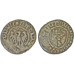 Mint: Breslau Obv: Arms of City. Rev: "W" Weight: .45 gm Reference: Kop.8777 R1 Grade: AVF, partially shallow strike, scarce coinage issue