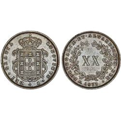 Obv: Head left Rev: Crowned arms, pillars Weight: 6 gm Ref: KM# 22 Grade: Nice AXF, toned.