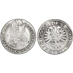 SILESIA. PIAST DYNASTY SILESIAN STATE OF LEGNITZ-BRIEG. GEORGE III (1639-1664). AR 15 KREUZER 1664.