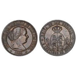 SPAIN. ISABEL II. CU 5 CENTIMOS 1868. NICE XF+