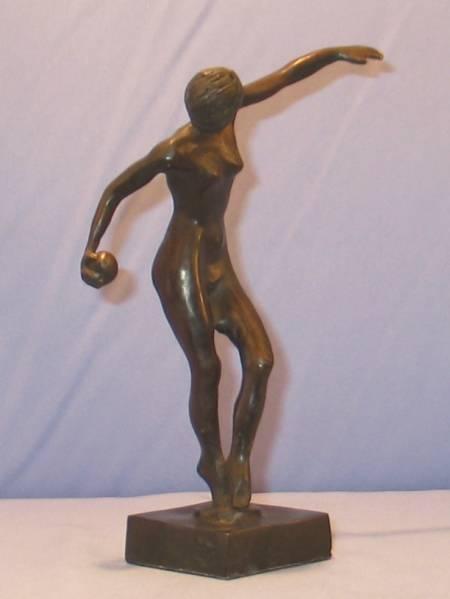 THE SCULPTURE MEASURES 10 INCH X 6 3/4 INCH X 3 1/2 INCH.
