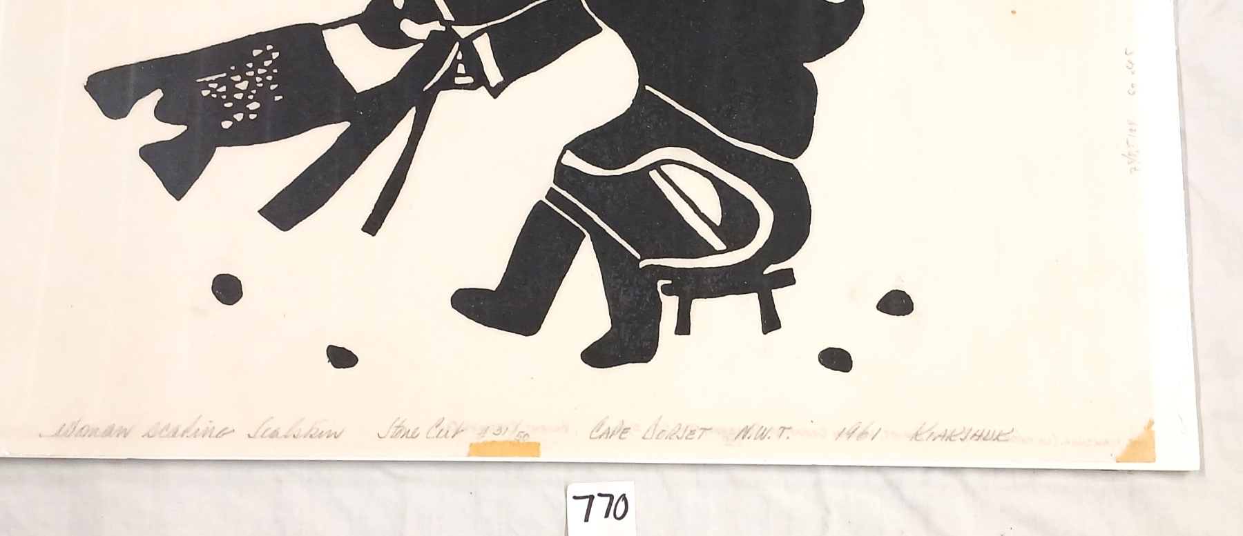 NOTE: 13.5 X 19.5IN - ARTIST ORIGINAL PRINT 31/50 - CIRCA 1961 - MADE IN CAPE DORSET
