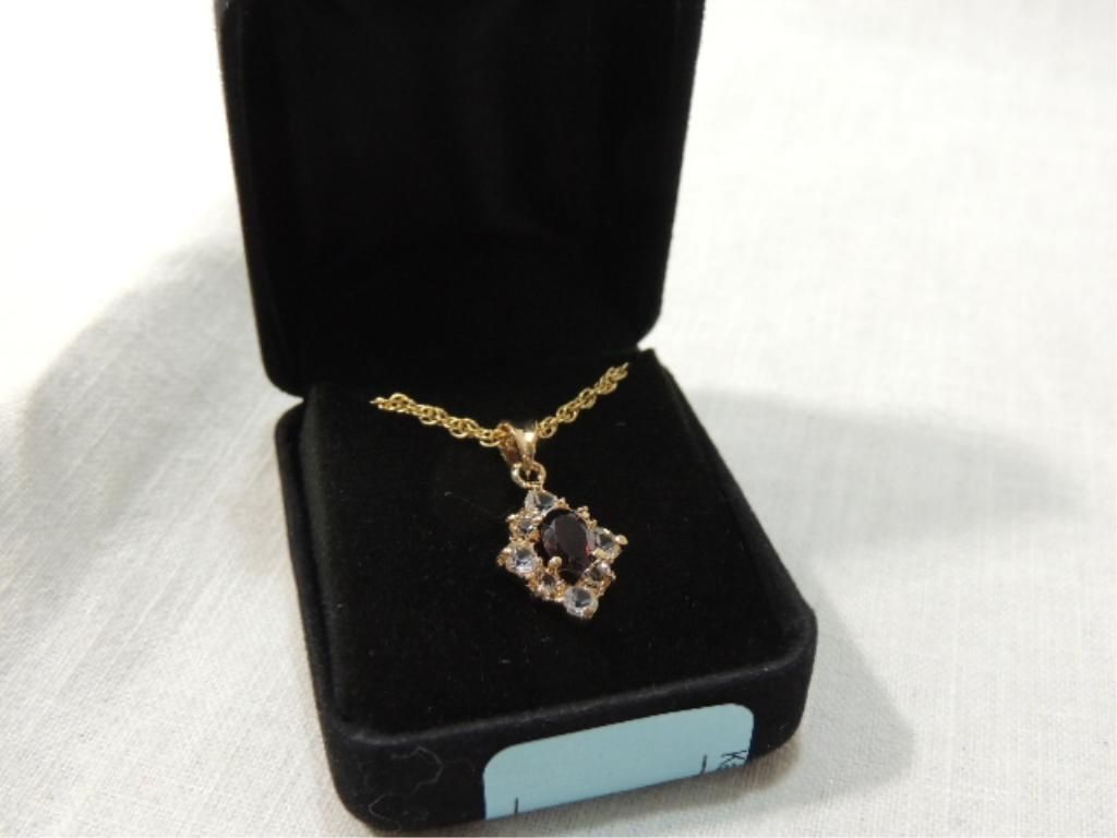 WOMANS FASHION NECKLACE GARNET CZ GOLD TONE. SEE PICTURE FOR DETAILS.