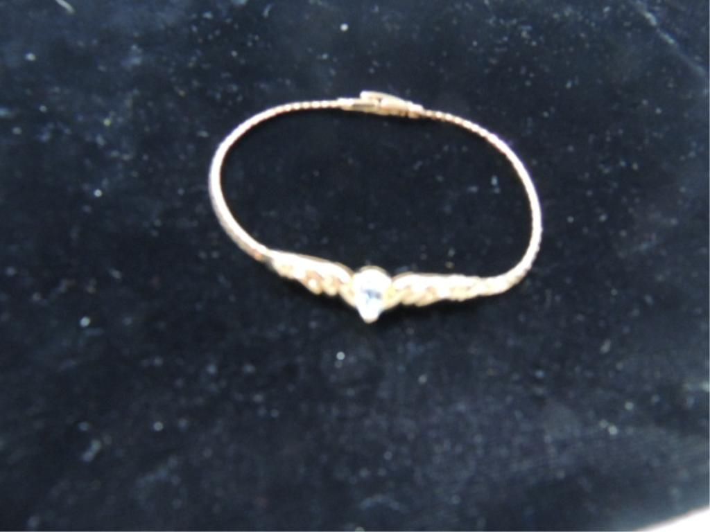WOMANS GOLD TONE BRACELET WITH JEWEL ACCENT. SEE PICTURE FOR DETAILS