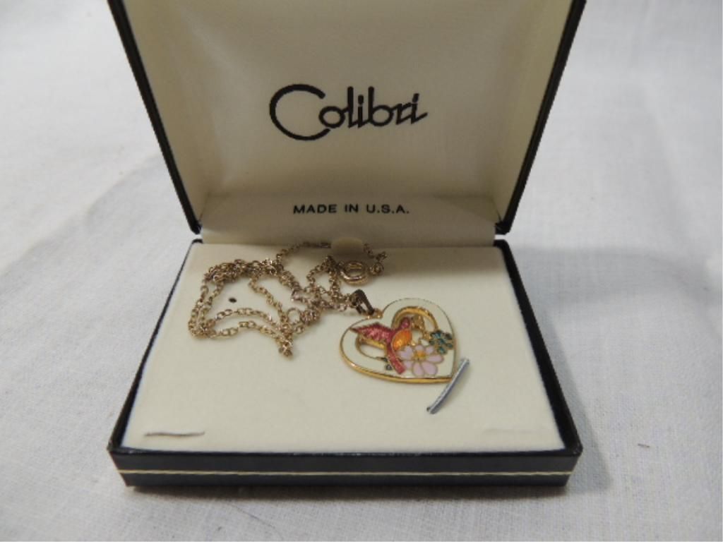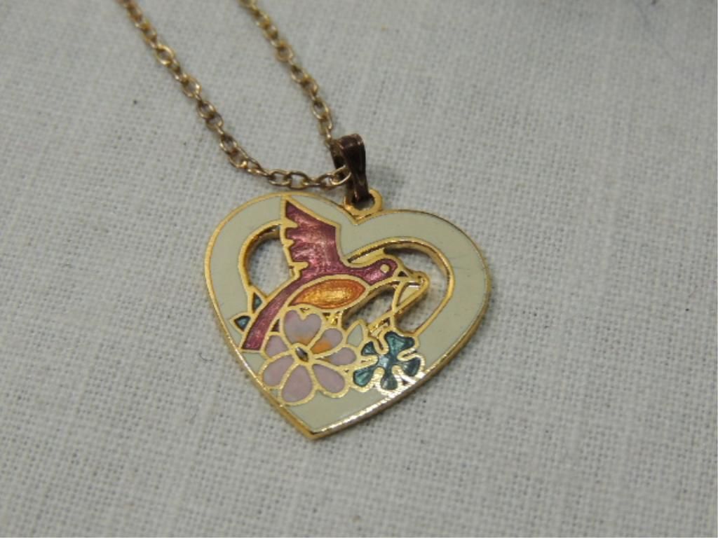 WOMANS NECKLACE HEART SHAPED CHARM BIRD & FLOWERS. SEE PICTURE FOR DETAILS