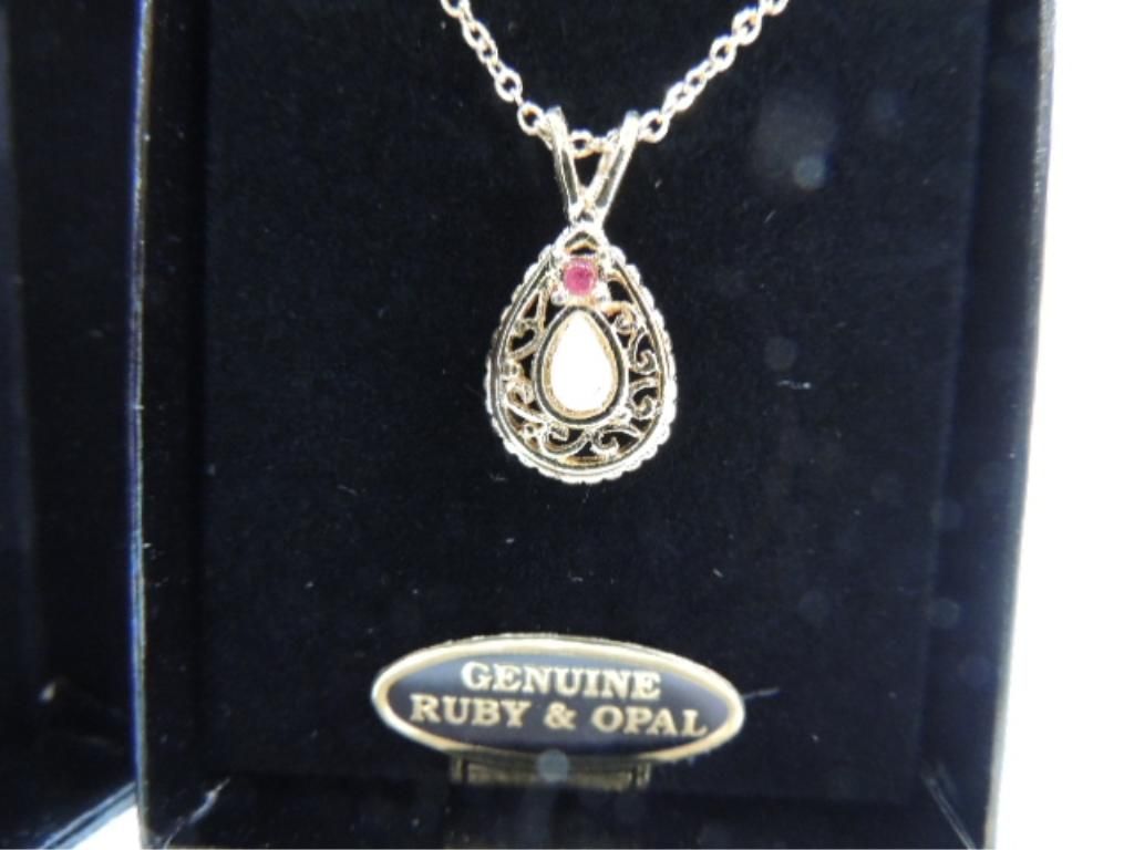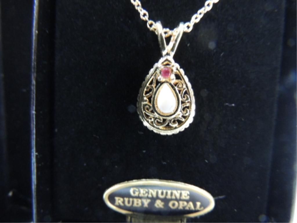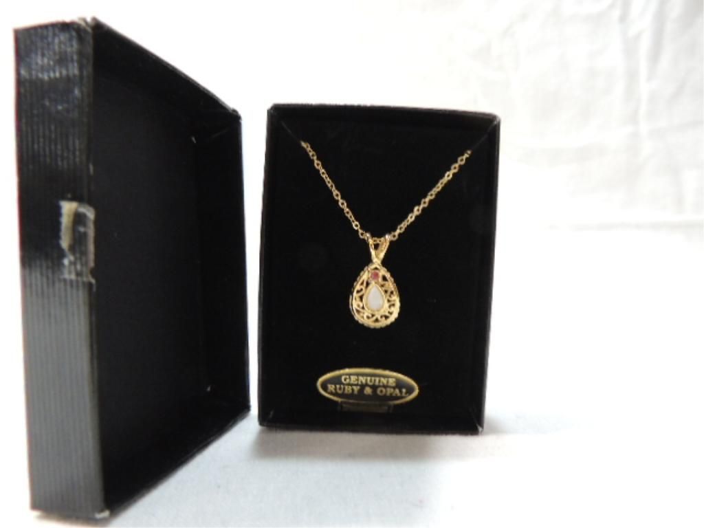 WOMANS TEAR DROP NECKLACE. GENUINE RUBY & OPAL GOLD TONE SEE PICTURE FOR DETAILS