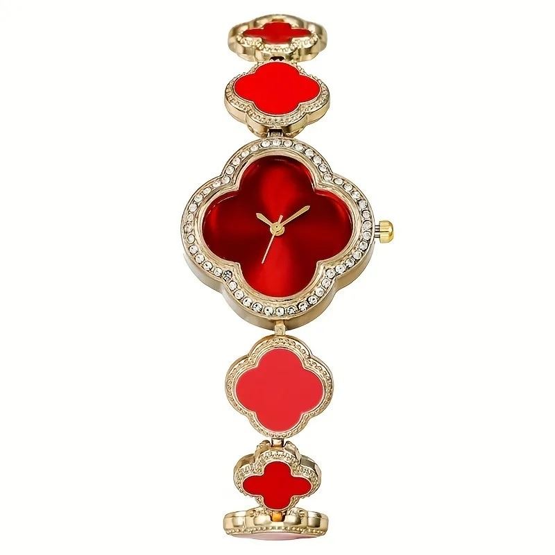 WOMEN CLOVER SHAPED WATCH RED COLOR BRACELET
