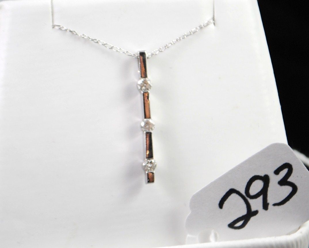 WOMENS 10K WHITE GOLD DIAMOND PENDANT WITH THREE ROUND DIAMONDS - APPRAISED RETAIL REPLACMENT IS $750.00 - COMES WITH THE JEWELERS APPRAISAL CARD