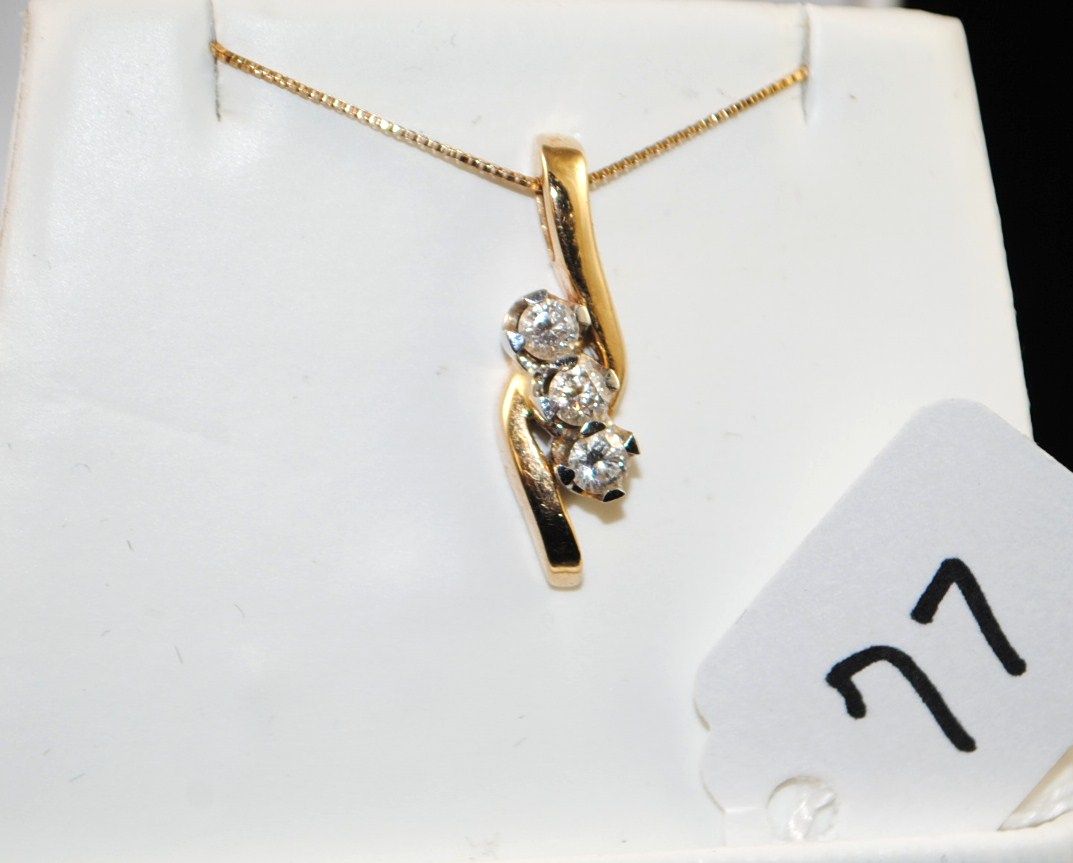 WOMENS 14K YELLOW GOLD DIAMOND PENDANT AND CHAIN WITH THREE ROUND DIAMONDS (APPROX. 1/2CTTW) - APPRAISED RETAIL REPLACEMENT IS $2,700.00 - COMES WITH THE JEWELERS APPRAISAL CARD FOR INSURANCE
