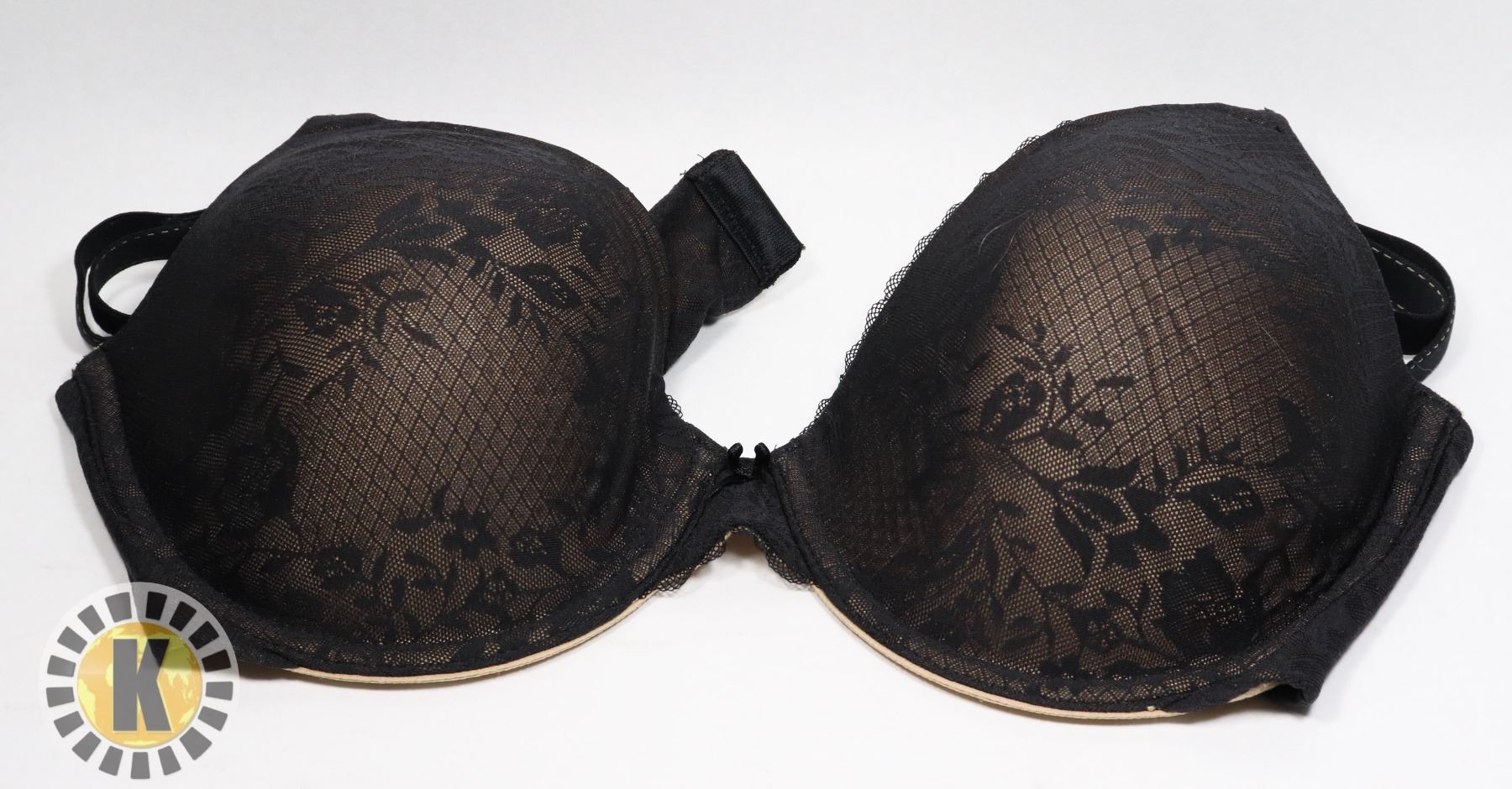 WOMENS 38B BLACK LACE OVER NUDE BRA