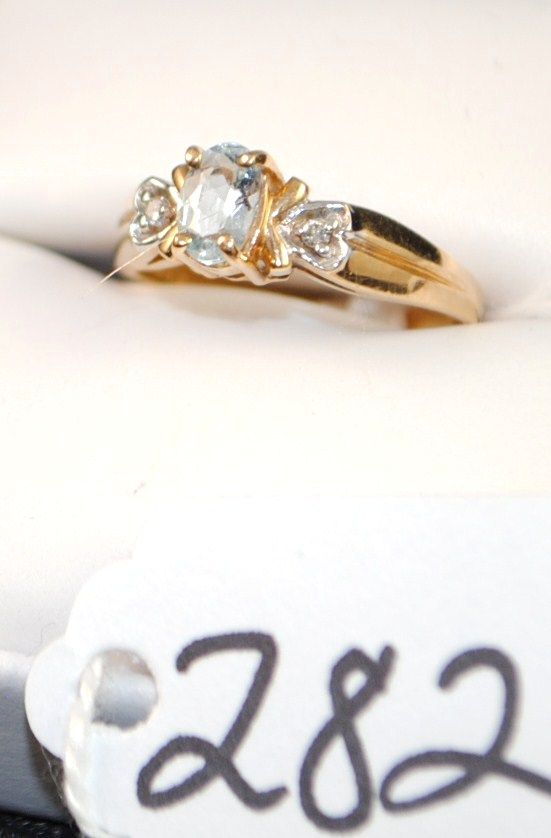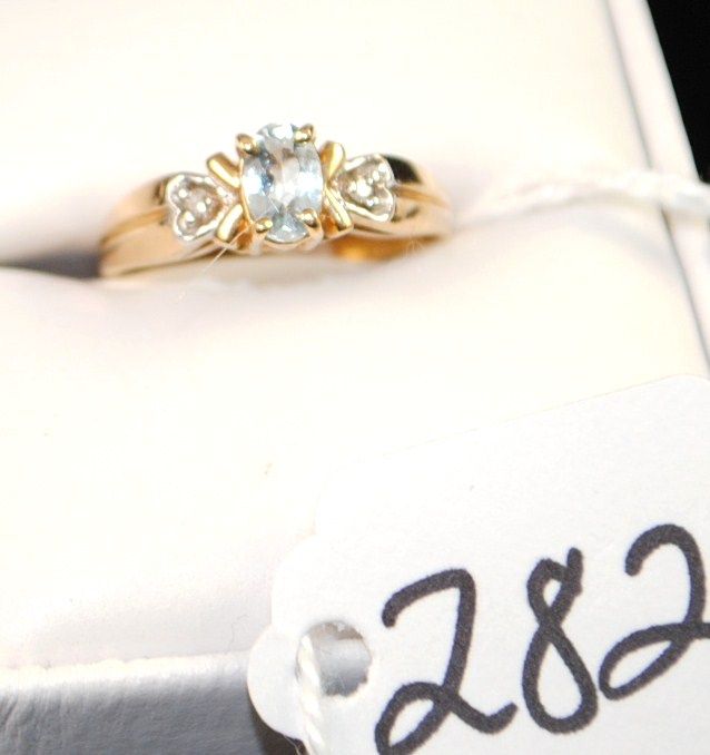 WOMENS BLUE TOPAZ AND DIAMOND RING WITH ONE OVAL CUT BLUE TOPAZ AND TWO ACCENT DIAMONDS SET IN 10K YELLOW GOLD RING