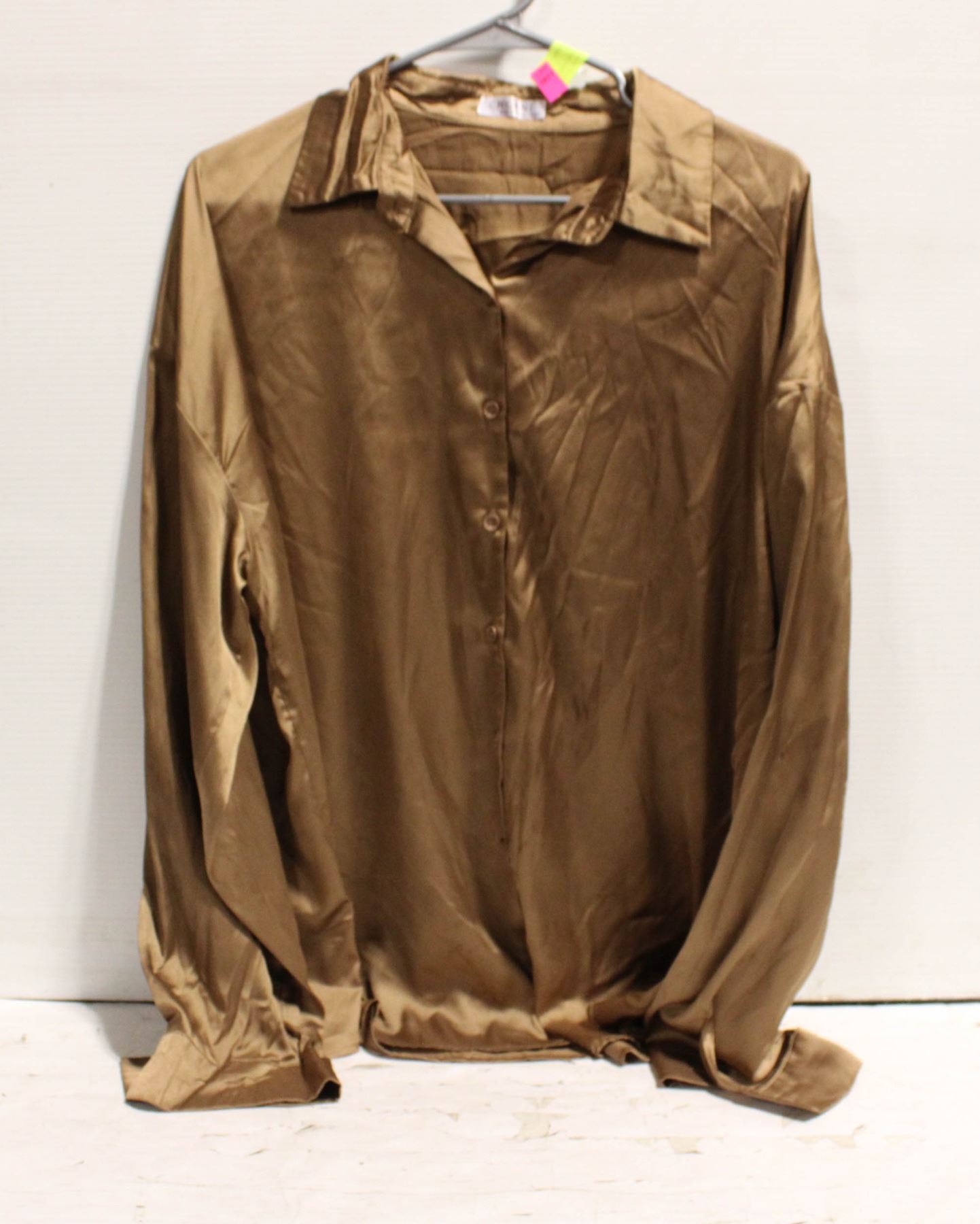 LAPEL V NECK LONG SLEEVE BLOUSE TOP BROWN XXXL