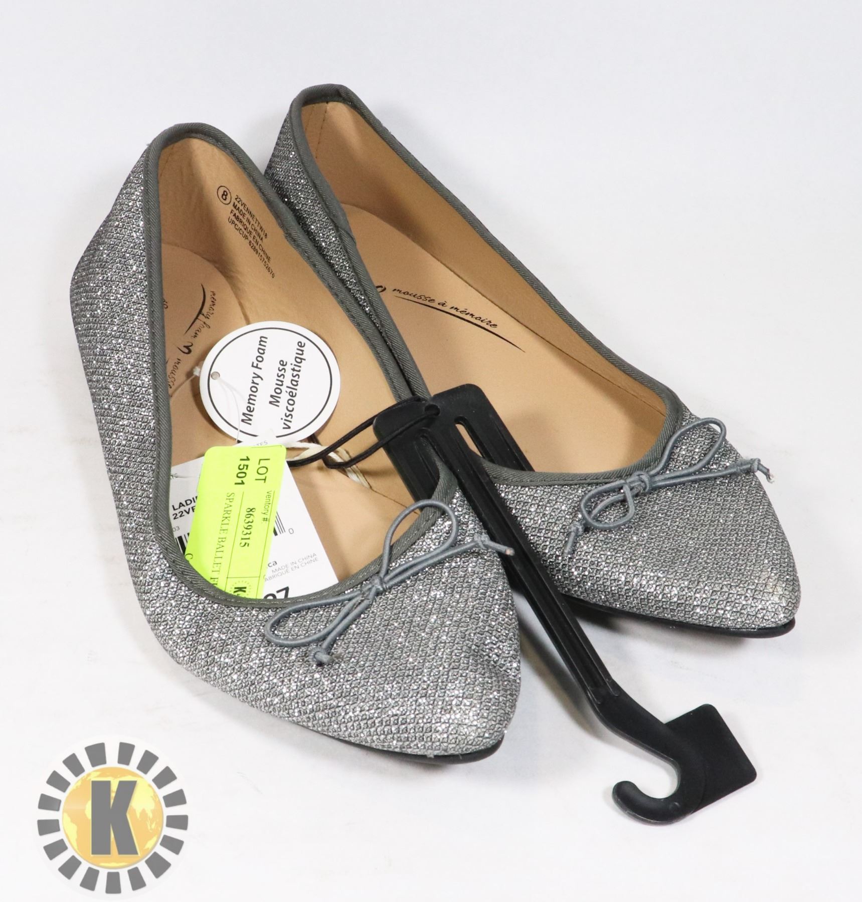 WOMENS SPARKLE BALLET FLATS SIZE 8