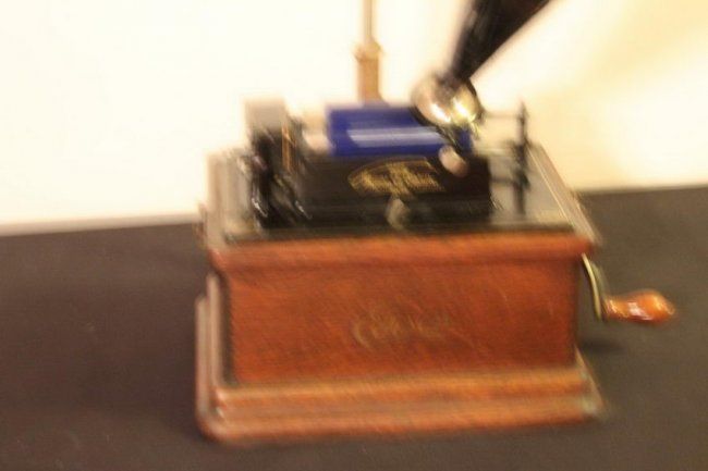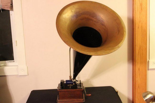 WONDERFUL EDISON FIRESIDE PHONOGRAPH CYLINDER PLAYER IN GREAT CONDITION ALL ORIGINAL WITH LARGE HORN - HORN 35 X 20.5 - PLAYER 11.5 X 11 X 9