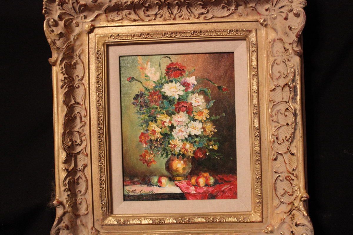 WONDERFUL FLORAL ARRANGEMENT FRAMED OIL ON CANVAS BY MATTHEW ORANTE 1996 - 8" X 10"