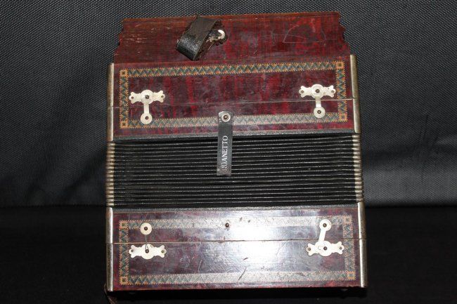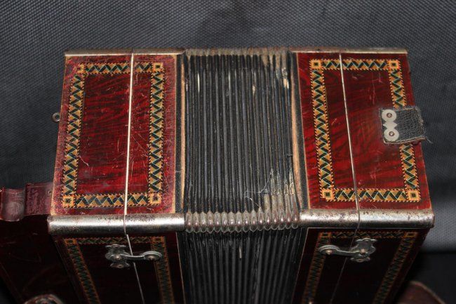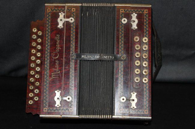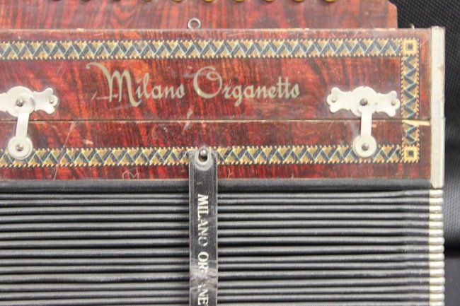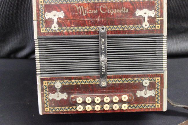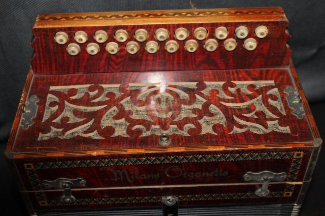 WONDERFUL MILANO ORGANELLES ACCORDION IN ROSEWOOD CASE - WORKS GREAT - NEAR MINT - CIRCA 1880 - BEAUTIFUL INLAY