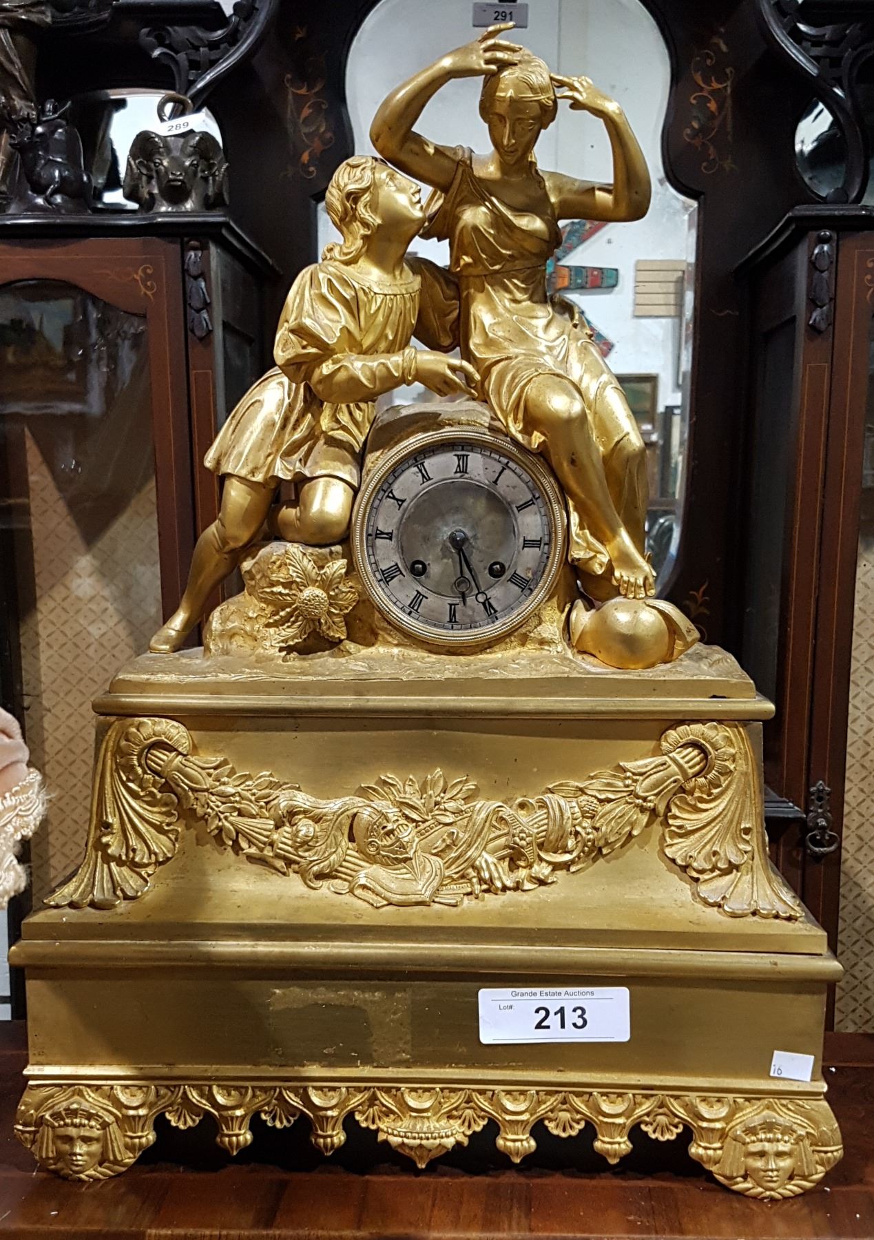WONDERFUL VICTORIAN GILT FIGURAL MANTLE CLOCK