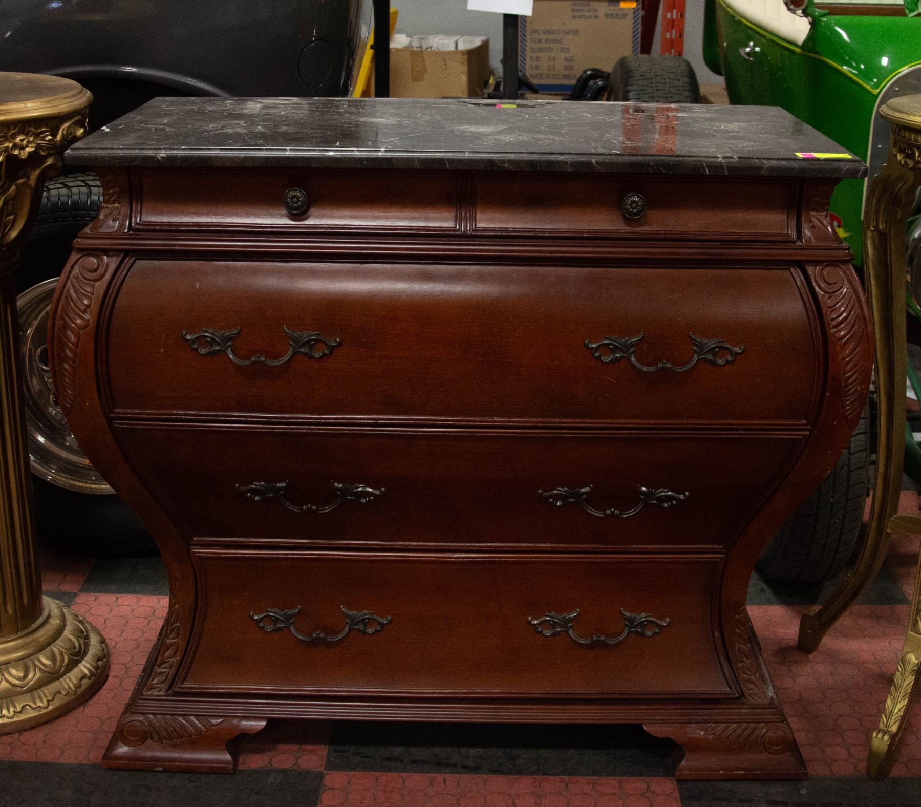 WOOD AND FAUX MARBLE TOP DRESSER