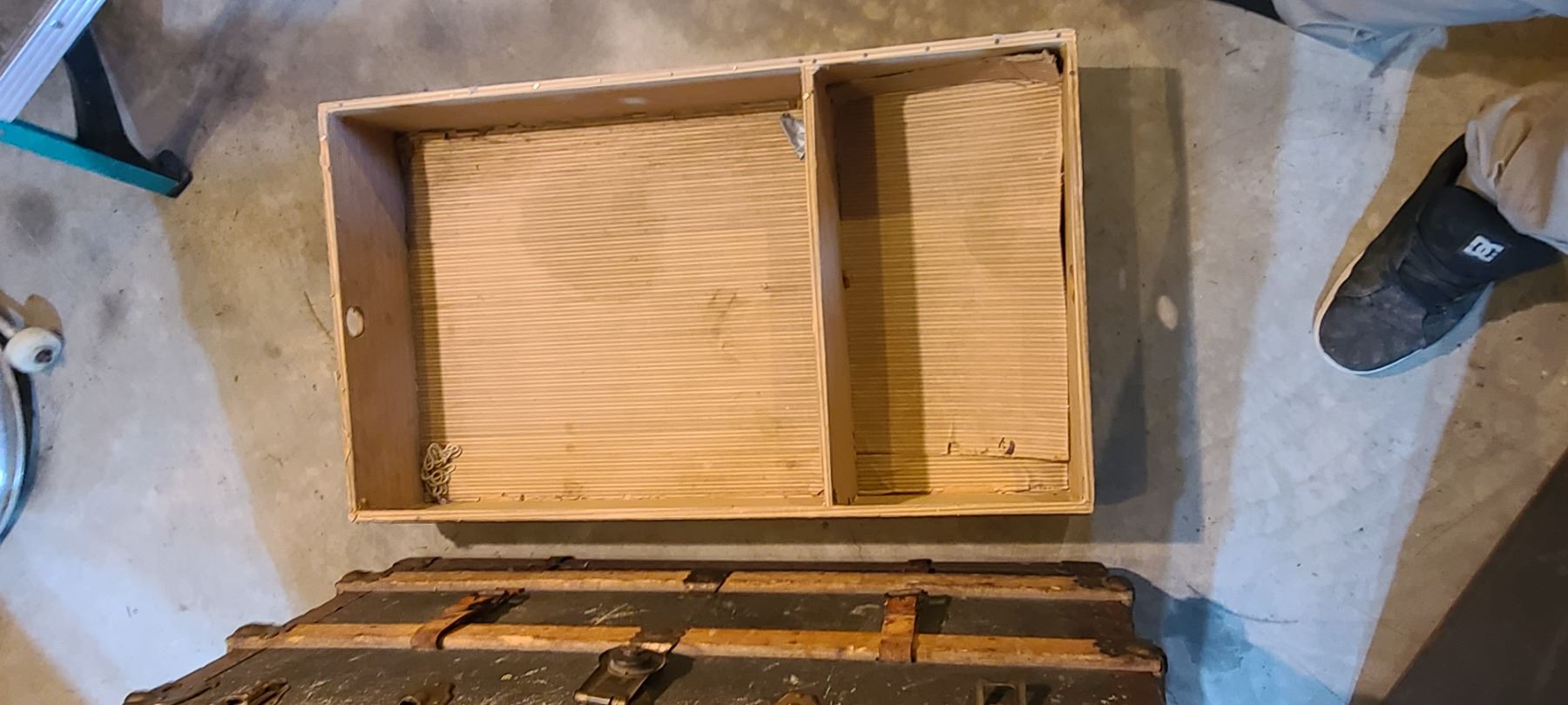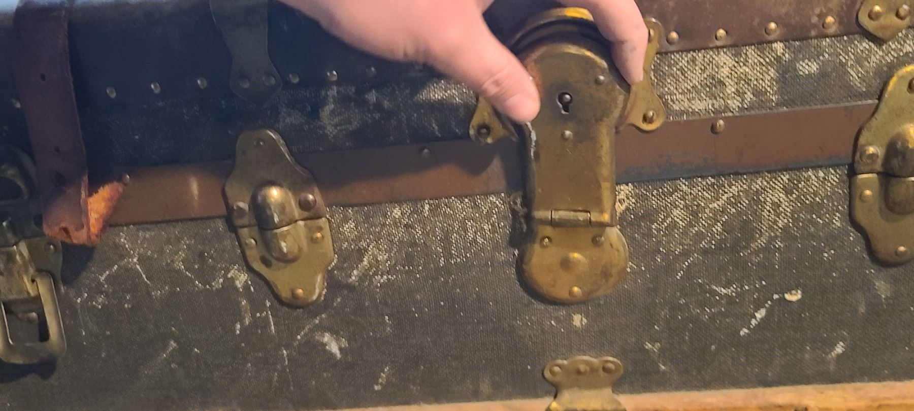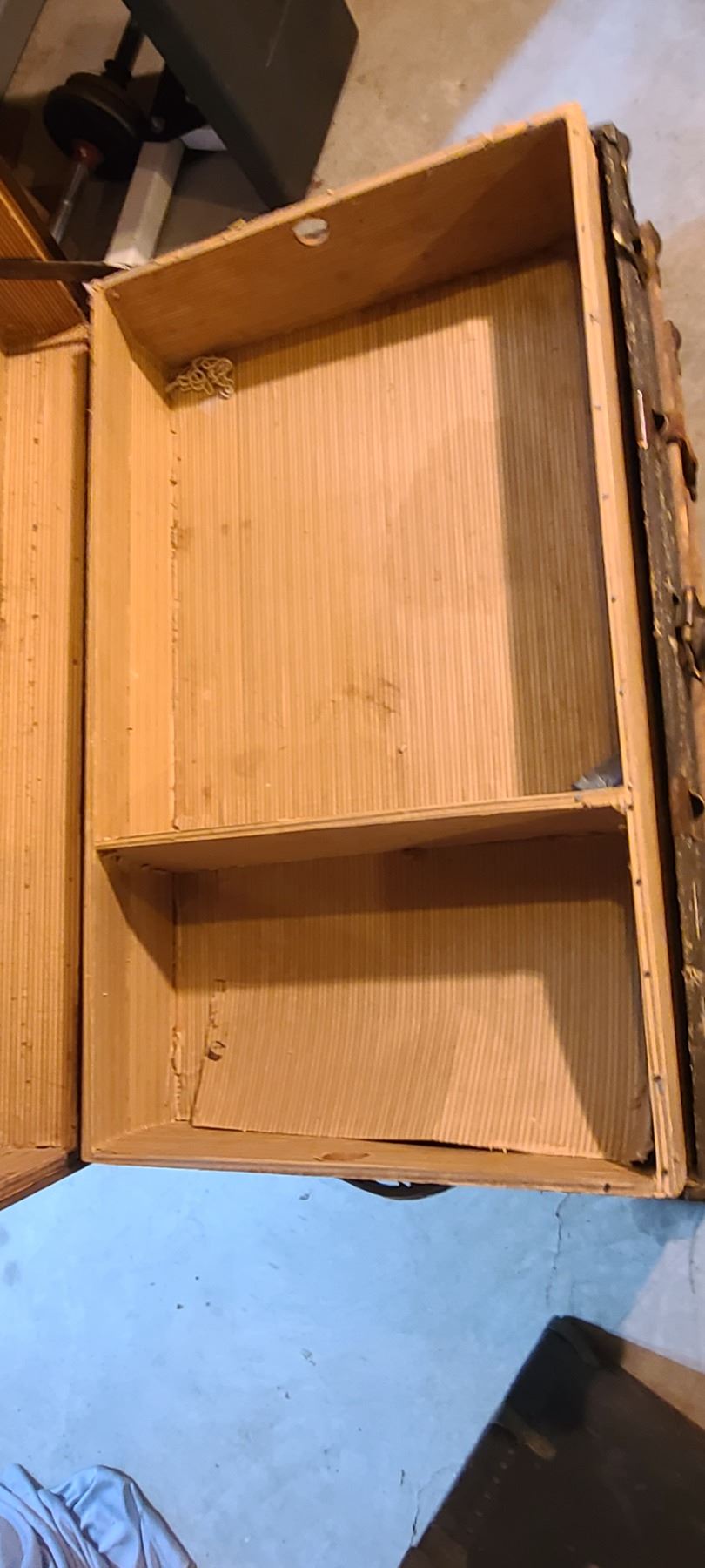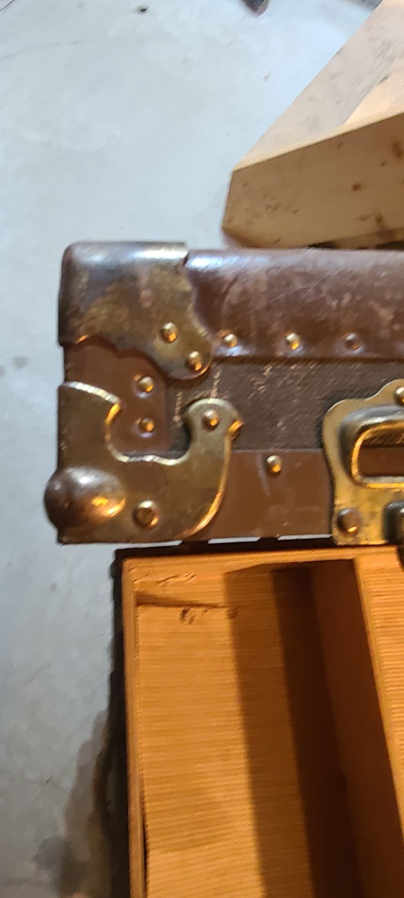 WOOD AND LEATHER STRAPPED STEAMER TRUNK 35 X 21 X 24"