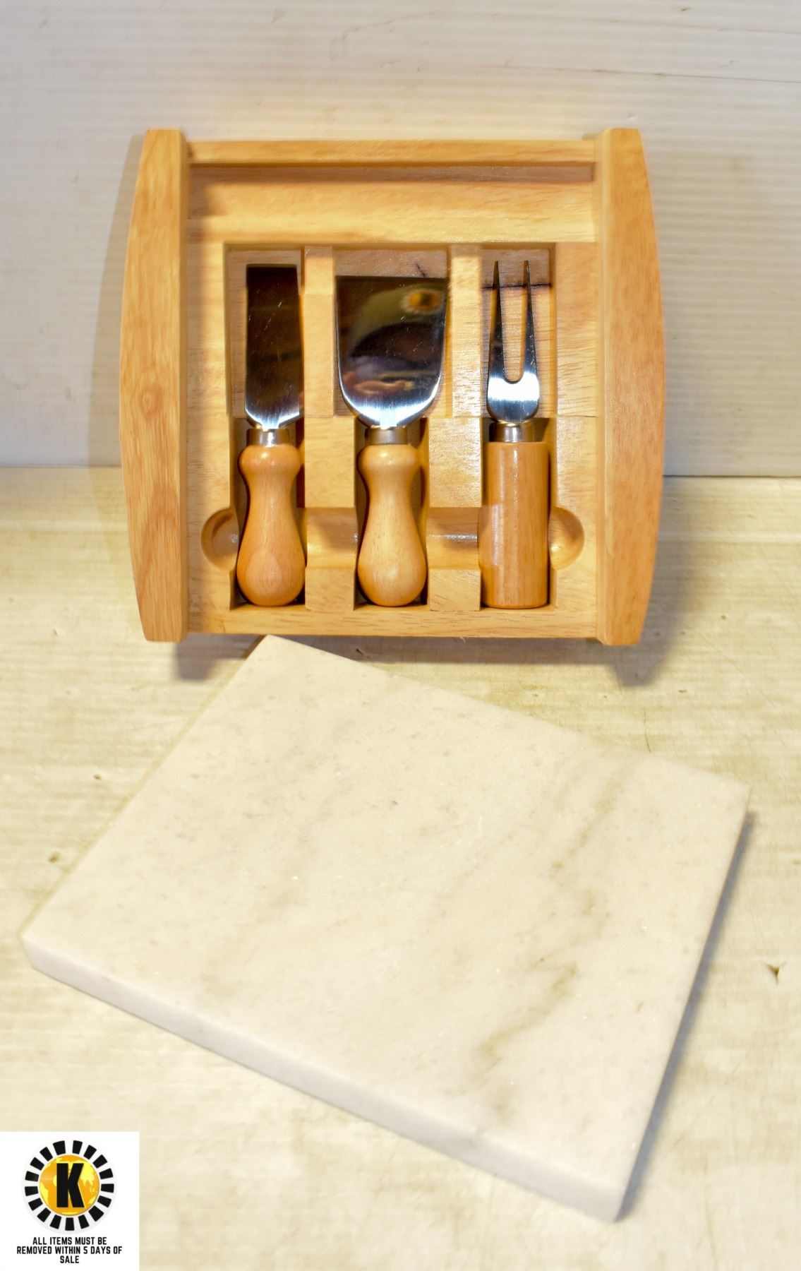 WOOD AND MARBLE CHEESE KNIFE AND BOARD SET