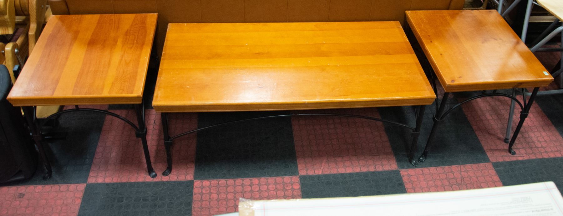 WOOD AND METAL 3PC COFFEE TABLE SET