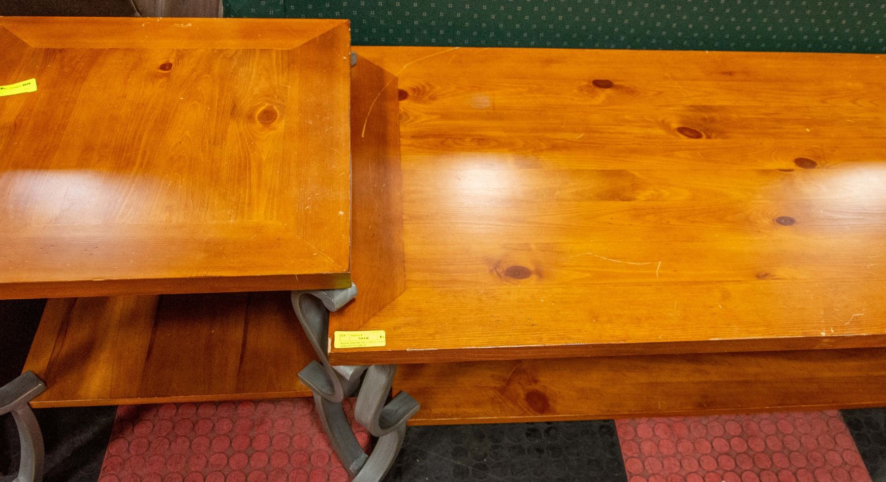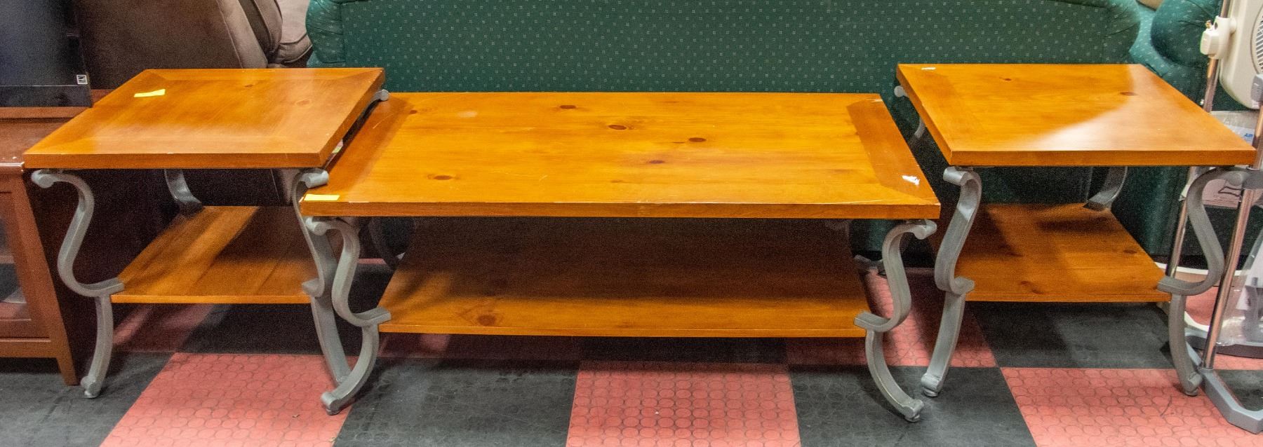 END TABLES. COFFEE TABLE IS 50" X 28" X 20". END TABLES ARE 24" X 24" 24"