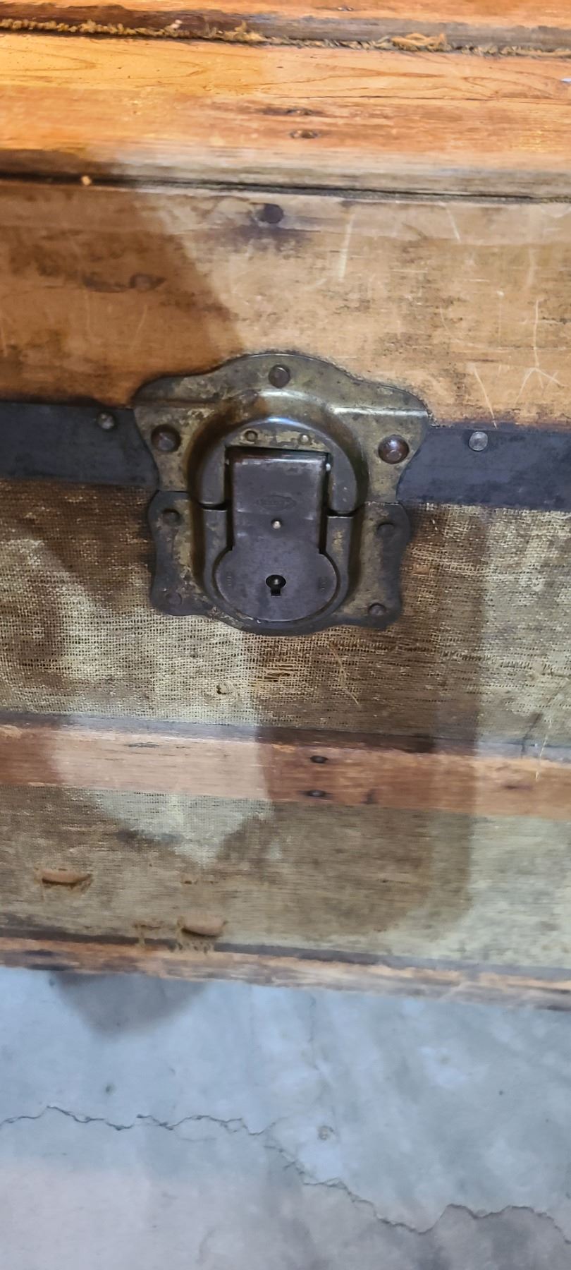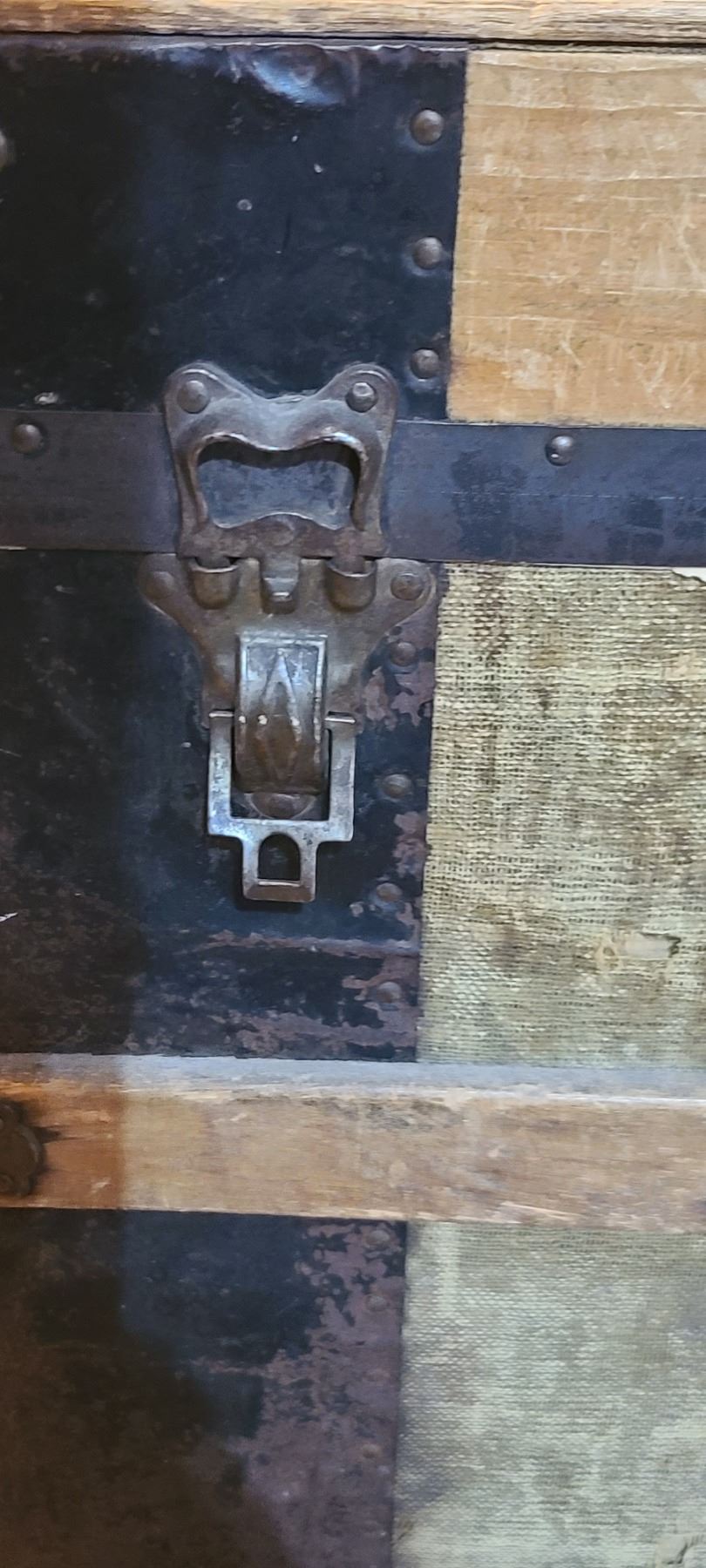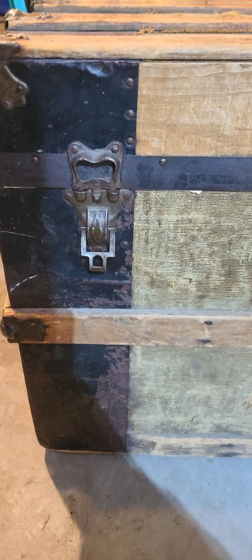 WOOD AND METAL STRAPPED STEAMER TRUNK 32 X18 21" COMES WITH X-MAS TREE LIGHTS