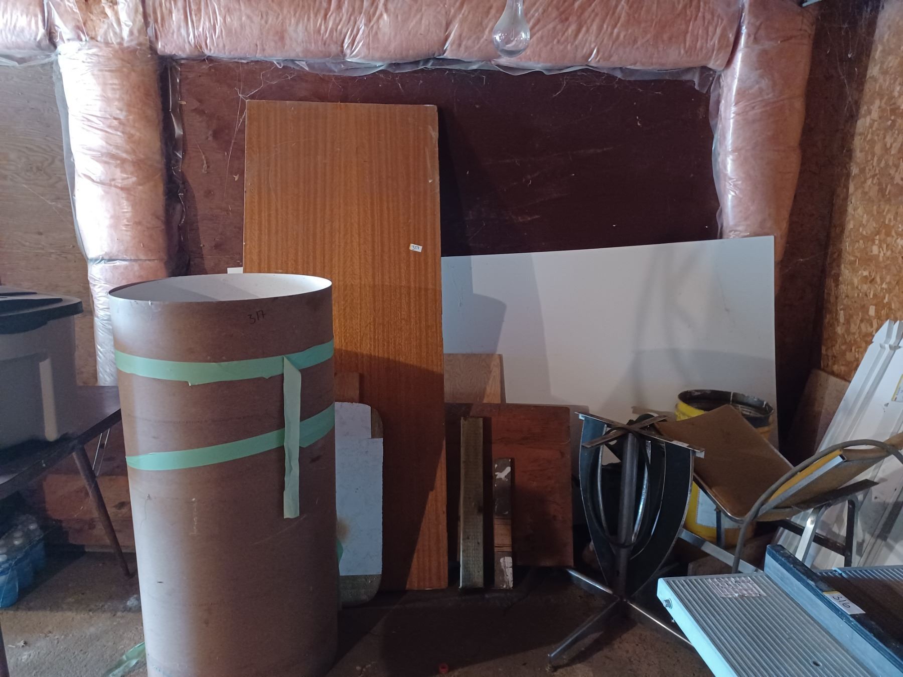 WOOD BASE WITH CASTORS, WOOD THAT’S ALONG THE WALL, DOOR, WOOD, VINYL SHEETS - PLEASE SEE IMAGES