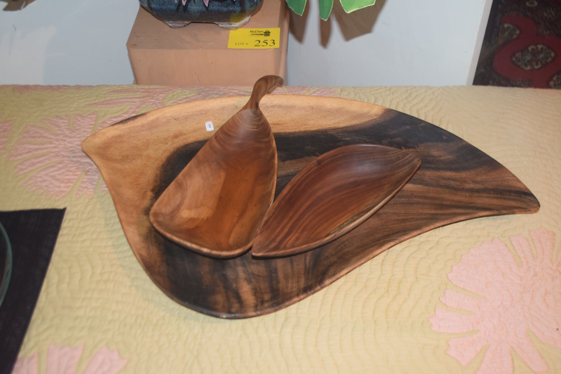 WOOD BOWLS & PLATTER; SIGNED CHOW (3 PCS)