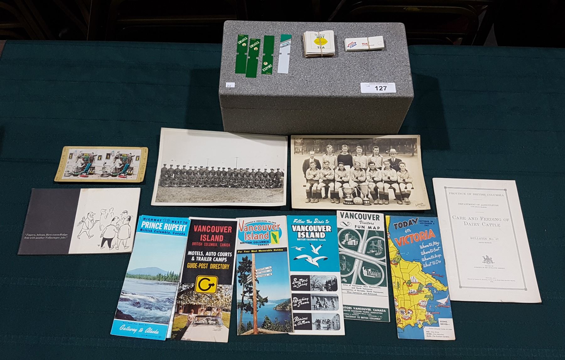 WOOD BOX W/VINTAGE BLACK/WHITE PHOTOS, OLD MAPS ETC