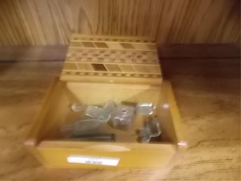 WOOD BOX WITH SMALL AS-IS BOTTLES