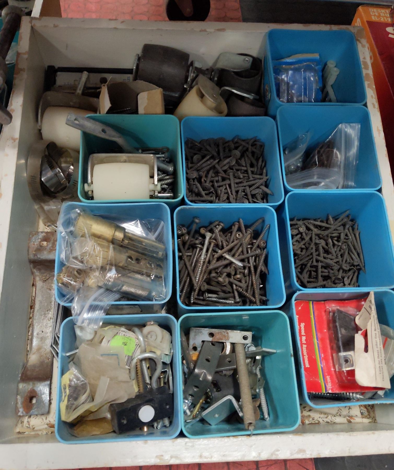 WOOD BOX WITH VARIOUS HARDWARES & MORE