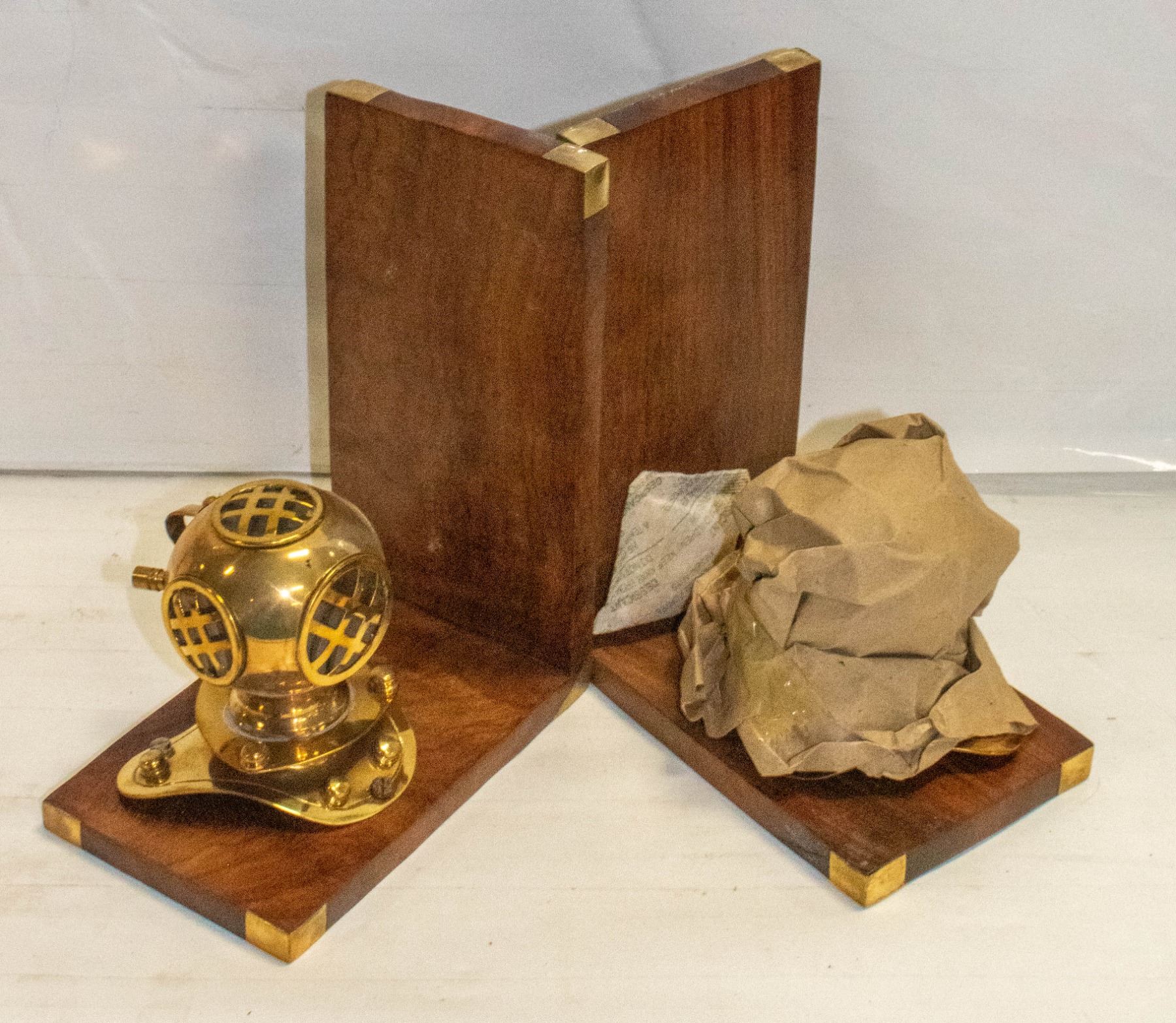 WOOD BRASS SHIPS WHEEL BOOKENDS