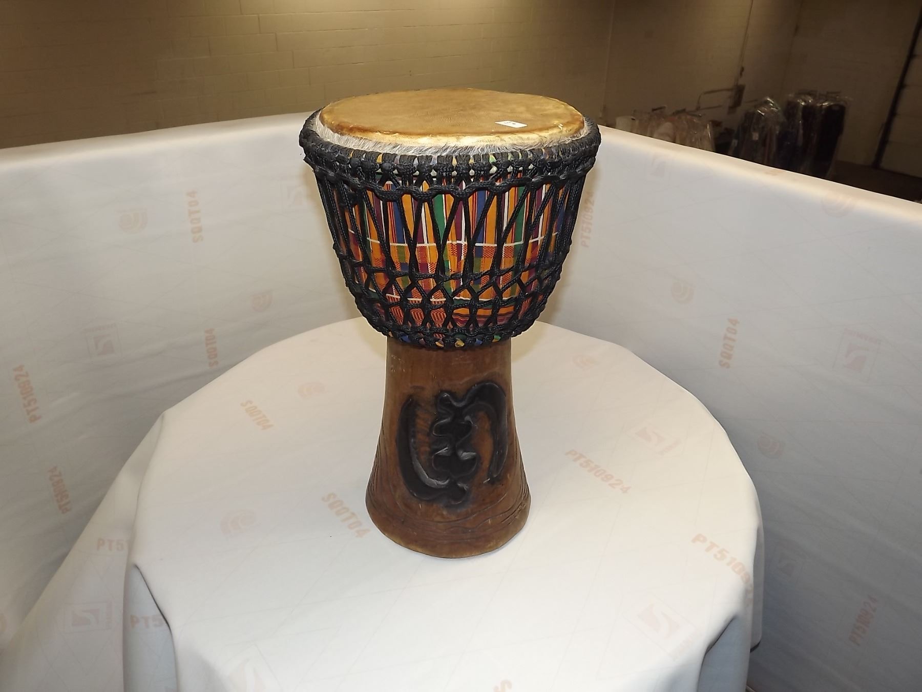 WOOD CARVED AND HIDE BONGO STYLE AFRICAN DRUM