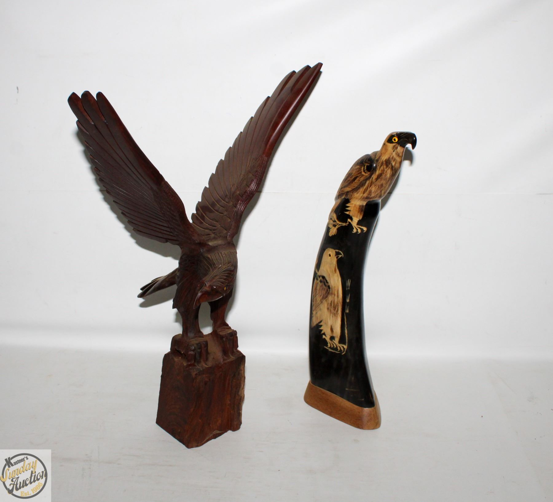 WOOD CARVED EAGLE W/ EAGLE HORN CARVING