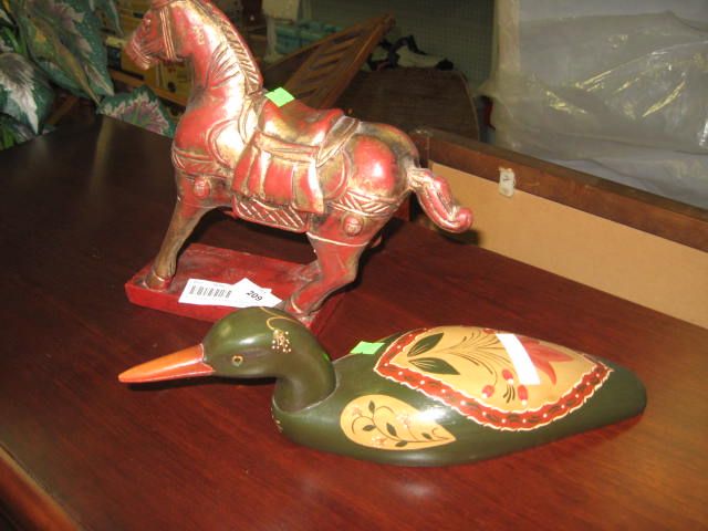 WOOD CARVED HORSE & PAINTED CARVED DUCK