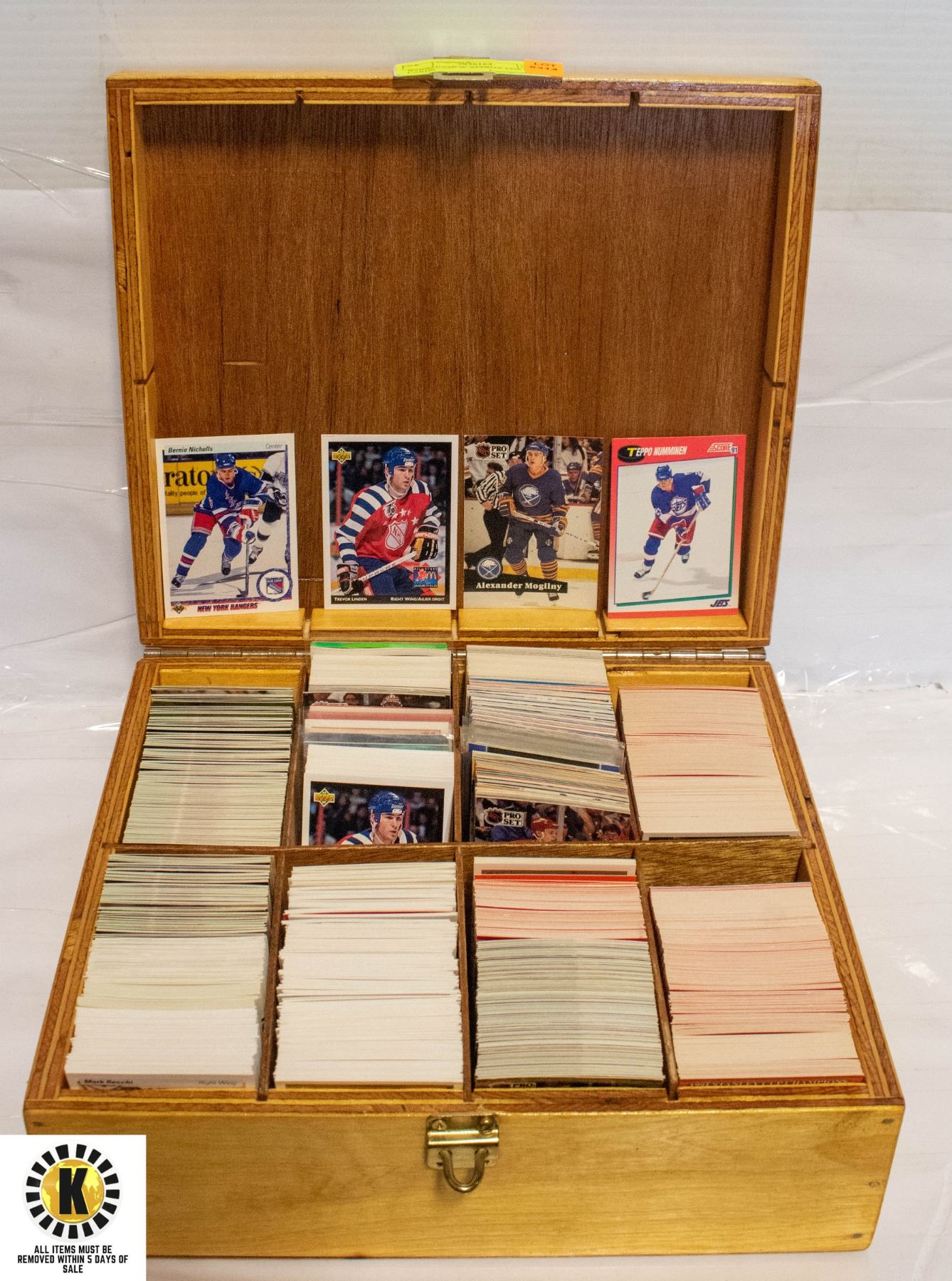 WOOD CASE W APPROX 1500 SPORTS CARDS