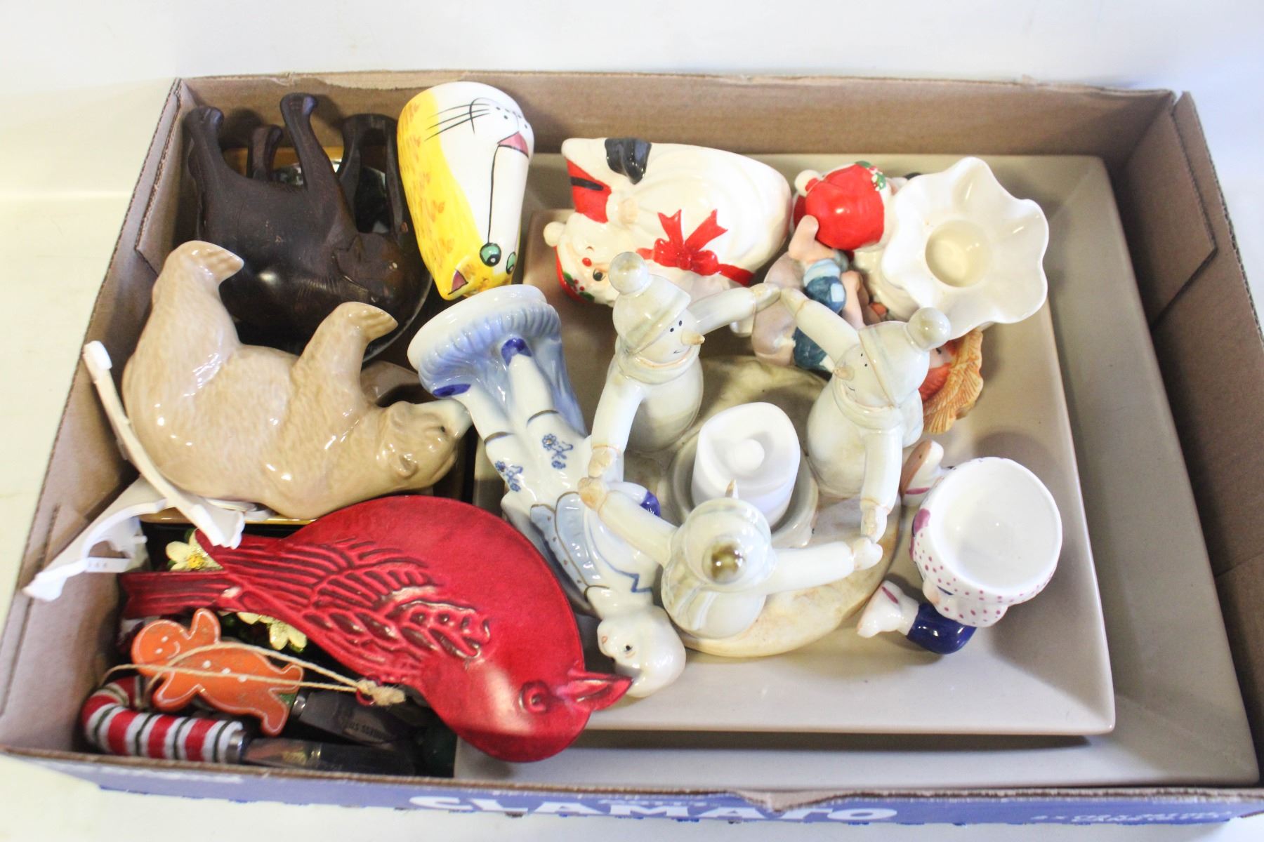 WOOD, CERAMIC & GLASS FIGURES ASSORTMENT LOT